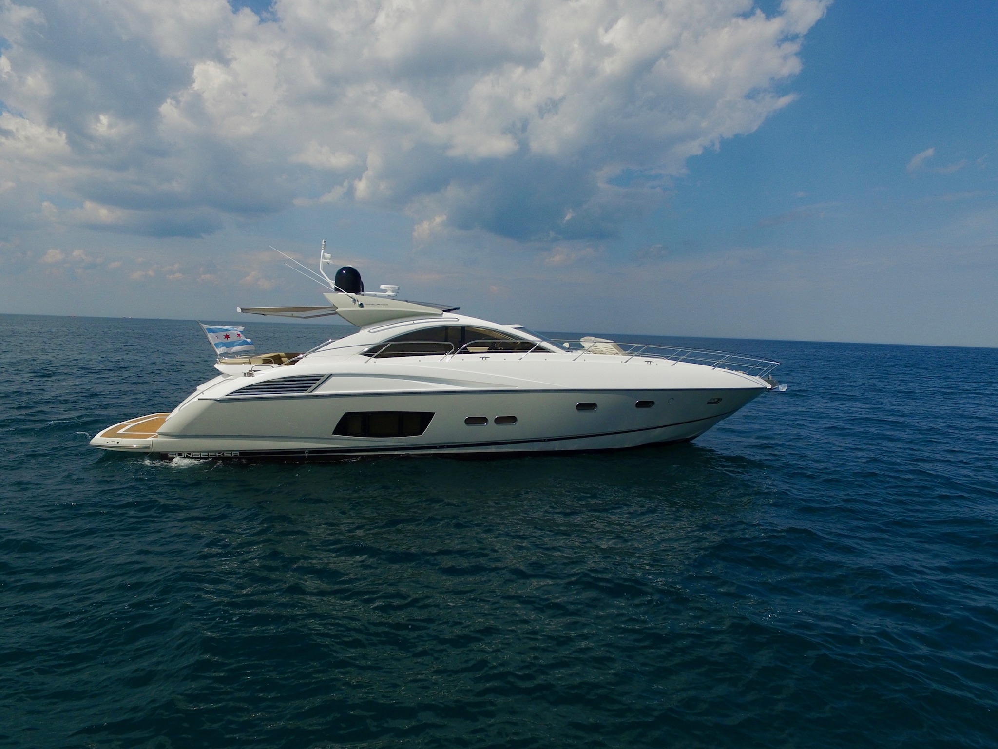 Discover Timeless Elegance on the Waters of Lake Michigan Immerse yourself in luxury and sophistication aboard the breathtaking Sovran Tiara yacht based in Chicago. As you step ont